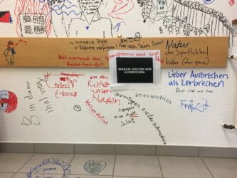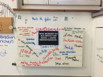 15. Oktober – 8.November 20. Kunst im Gefängnis: Wir haben die Ausstellung von ArtWillisau begleitet. Besuchende konnten Wände vollkritzeln und sich mit Expert*innen in Talks über die Institution Gefängnis und über Strafrecht austauschen.